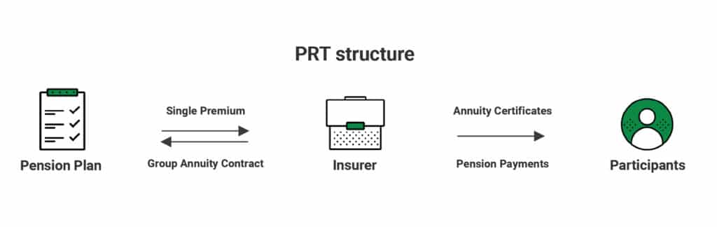 Executing a successful PRT transaction involves 3 key components: preparation, quotation, and implementation. Working with a consultant to carefully plan and prepare data is essential as up-to-date participant data allows insurers to reduce risk charges and price more competitively. The plan sponsor should also conduct a thorough financial review of their pension plan to determine whether a full or partial buy-out is feasible and work with an annuity placement provider to manage the quotation process. When the quotation process is complete and an insurer is selected, a clearly defined implementation process is put into action with effective communication to make sure participants experience a smooth transition to the insurer. More details can be found in our Quick Guide to PRT.